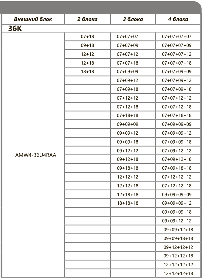 При подключении нескольких внутренних блоков, суммарная производительность которых превышает номинальную мощность наружного блока, при одновременной эксплуатации каждый из них будет работать со сниженной производительностью. Такой вариант подключения допускается в случае, когда внутренние блоки используются не одновременно (например, ночью – спальня, днем – гостиная).