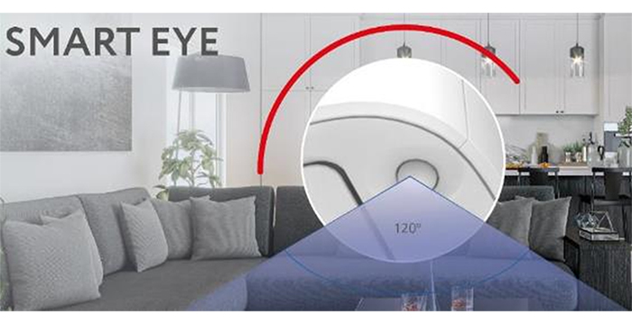 • Функция SMART EYE — В стандартной комплектации кондиционеры оснащены сканирующим пространство ИК-сенсором, который определяет местонахождение человека и направляет потоки воздуха на него или от него (в зависимости от выбранной настройки) — технология SMART EYE.