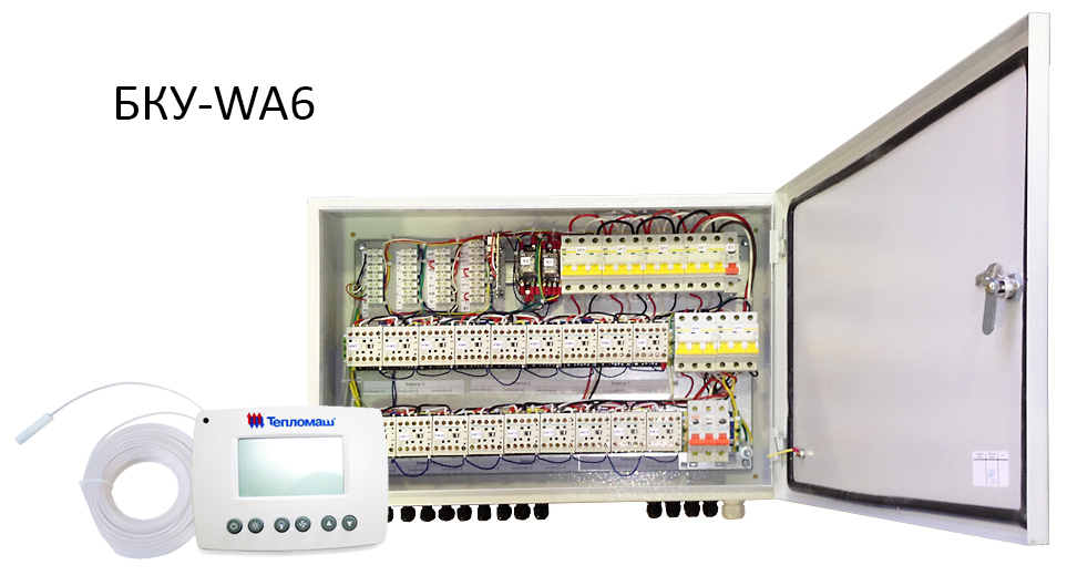 Блок коммутации предназначен для коллективного подключения завес со степенью защиты IP54 к электрической сети и управления с помощью выносного пульта HL10L (входит в комплект БКУ-WA6), а также подключения дополнительного оборудования напрямую к БКУ-WA6 без помощи БЛОК-WA. Данный способ подключения экономически целесообразно применять при подключении от 4 до 6 завес.
